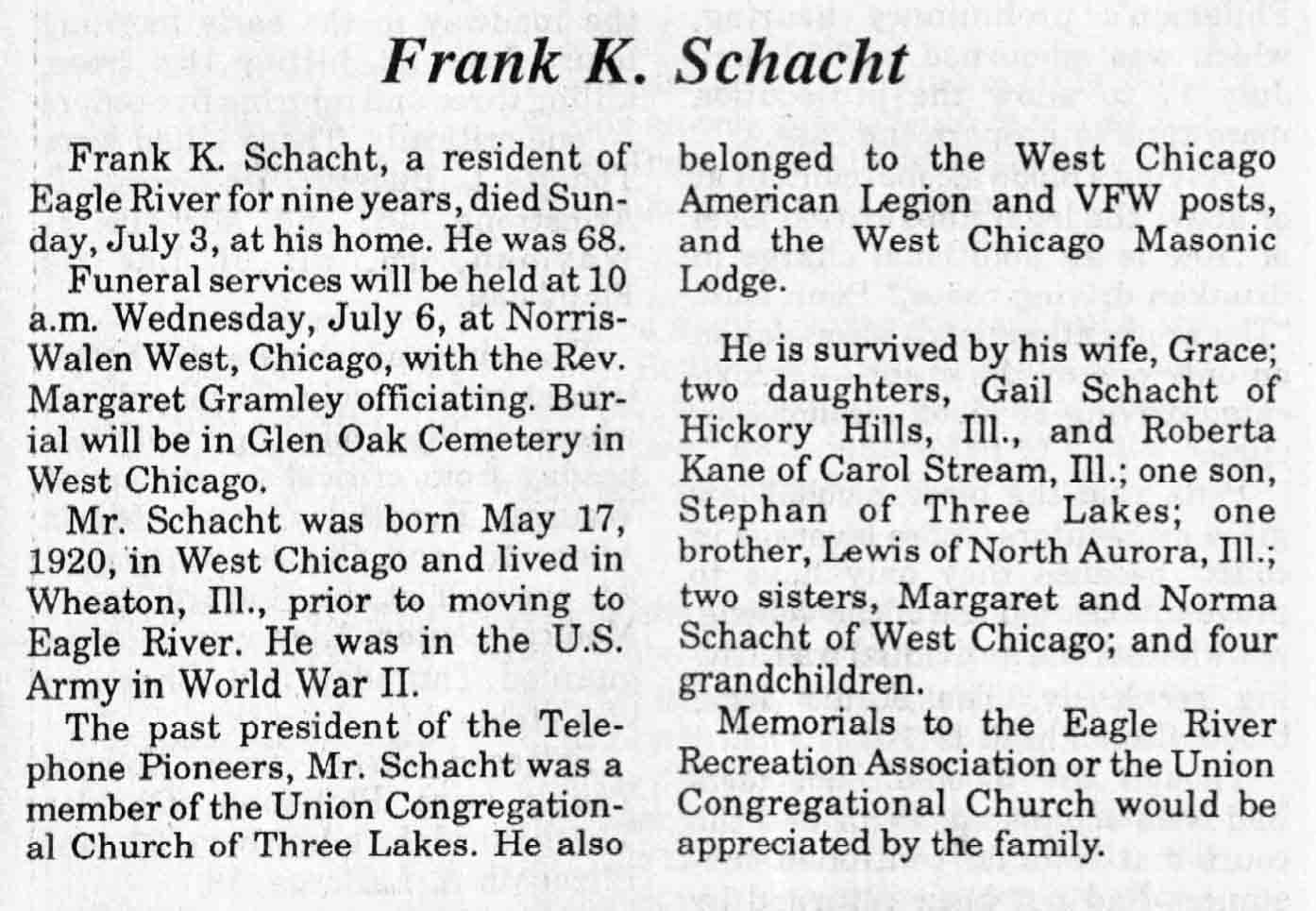 | Schacht | Frank K | 17 May 1920 | 03 Jul 1988 | V N-R | 06 Jul 1988 | 4 |