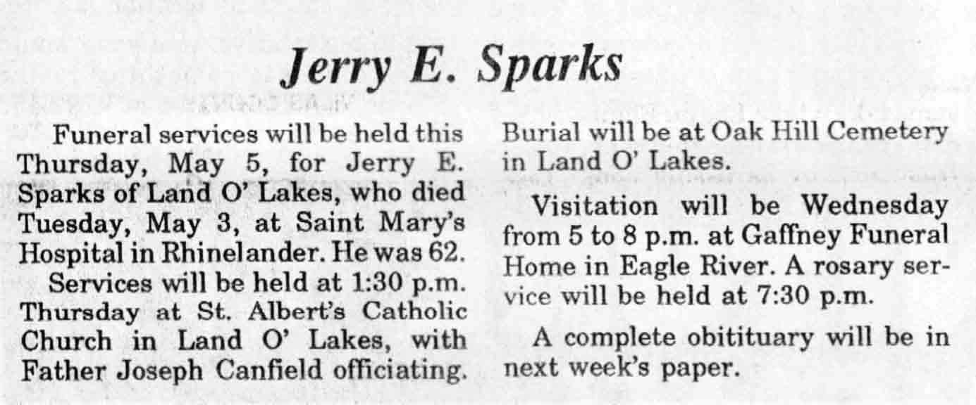 | Sparks | Jerry E #2 | 27 Nov 1925 | 03 May 1988 | V N-R | 11 May 1988 | 4 |