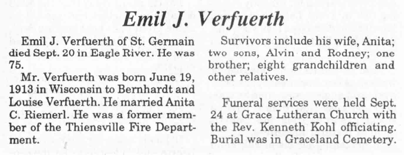 | Verfuerth | Emil J | 19 Jun 1913 | 20 Sep 1988 | V N-R | 28 Sep 1988 | 4 |