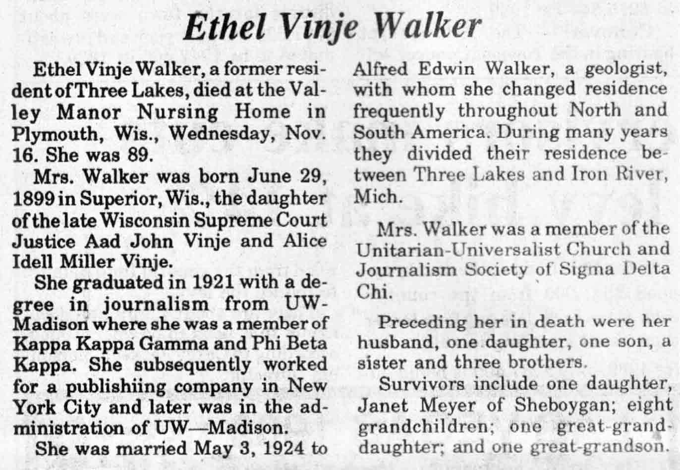 | Walker | Ethel (Vinje) | 29 Jun 1899 | 16 Nov 1988 | V N-R | 23 Nov 1988 | 4 |