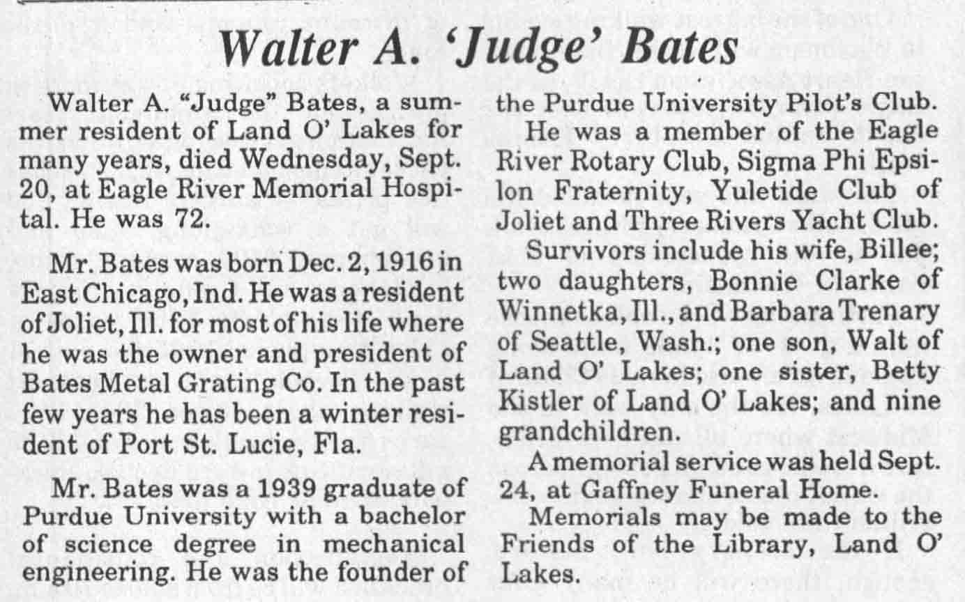 | Bates | Walter A 'Judge' | 02 Dec 1916 | 20 Sep 1989 | TLN | 27 Sep 1989 | 4 |