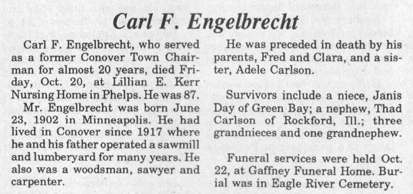 | Engelbrecht | Carl F | 23 Jun 1902 | 20 Oct 1989 | TLN | 25 Oct 1989 | 4 |