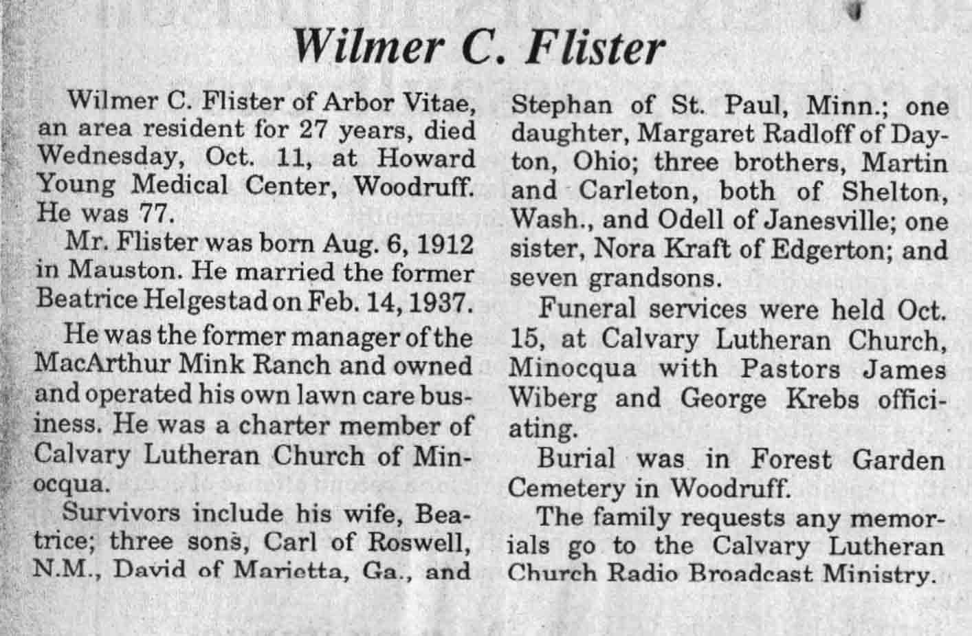 | Flister | Wilmer C | 06 Aug 1912 | 11 Oct 1989 | TLN | 18 Oct 1989 | 4 |
