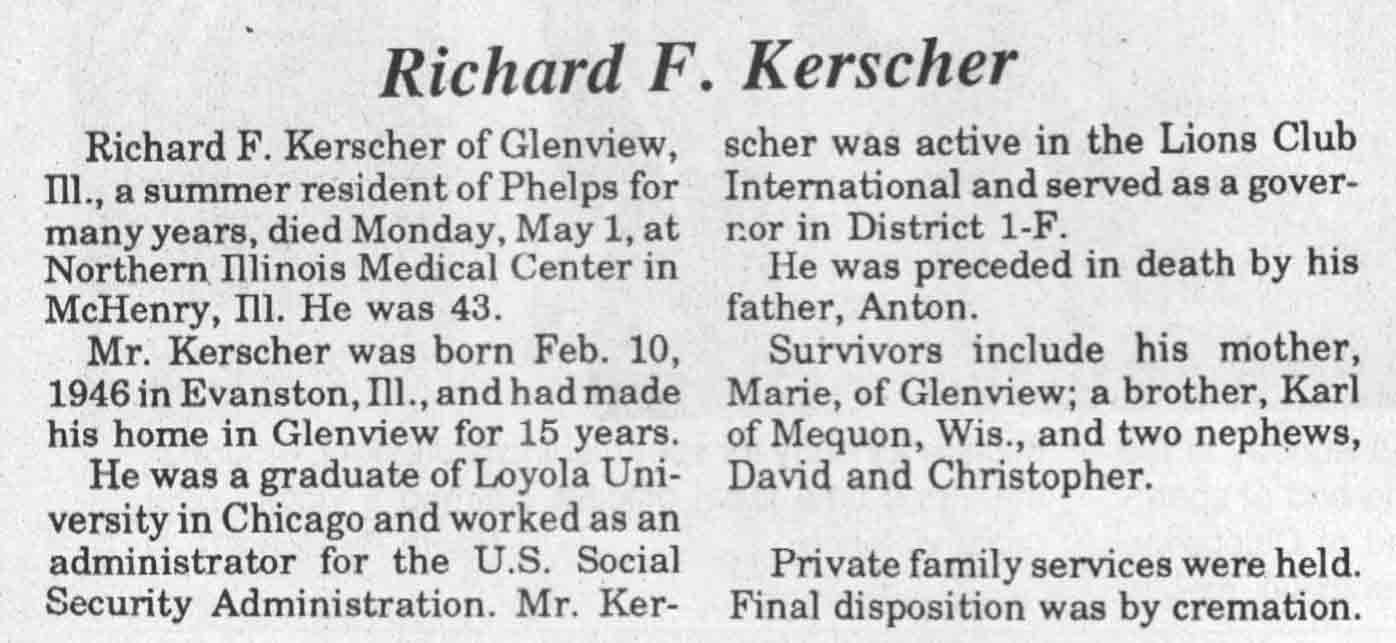 | Waldhuetter | Raymond J | c 1907 | 15 Jan 1989 | TLN | 01 Feb 1989 | 4 |
