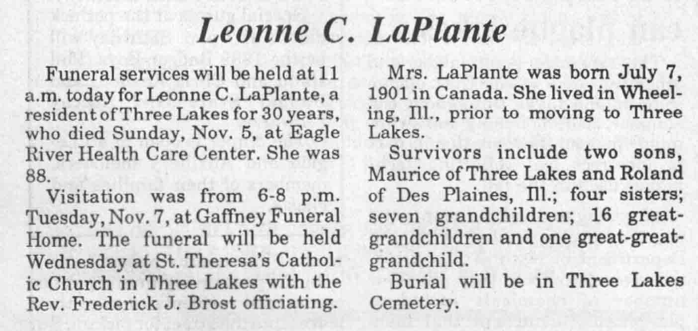 | Osuchowski | Leonard J #1 | c 1916 | 17 Apr 1989 | TLN | 19 Apr 1989 | 4 |