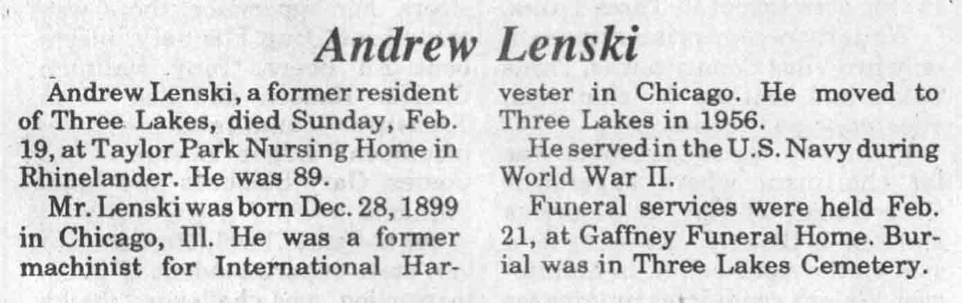 | Golembeski | Henry #2 | 03 Jan 1903 | 06 Nov 1989 | TLN | 15 Nov 1989 | 4 |