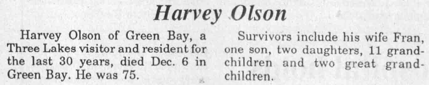 | Olson | Harriett L | 04 Jun 1918 | 26 Aug 1989 | TLN | 30 Aug 1989 | 4 |