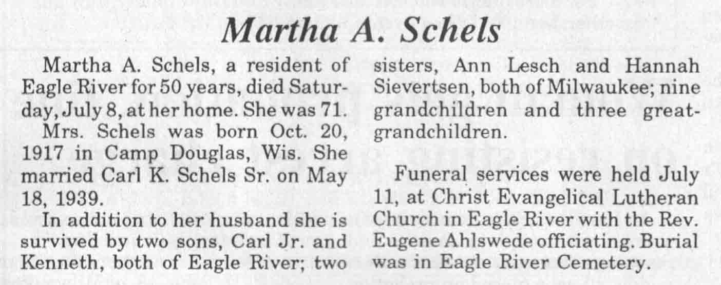 | Schels | Martha A | 20 Oct 1917 | 08 Jul 1989 | TLN | 12 Jul 1989 | 4 |