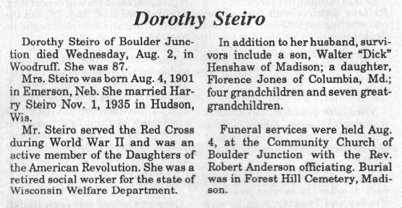 | Steiro | Dorothy | 04 Aug 1901 | 02 Aug 1989 | TLN | 09 Aug 1989 | 4 |