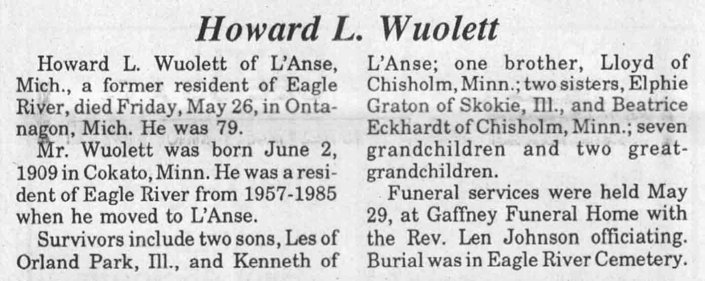 | Wuolett | Howard L | 02 Jun 1909 | 26 May 1989 | TLN | 31 May 1989 | 4 |