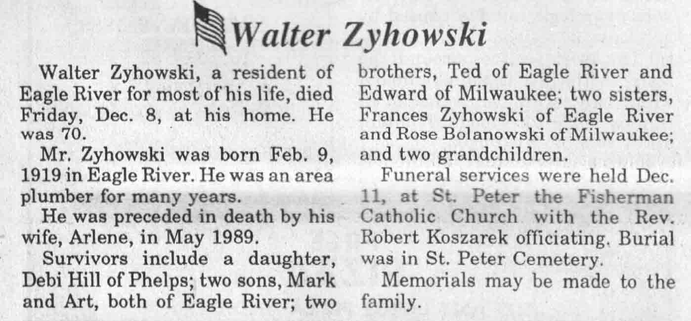 | Zyhowski | Walter | 09 Feb 1919 | 08 Dec 1989 | TLN | 13 Dec 1989 | 4 |