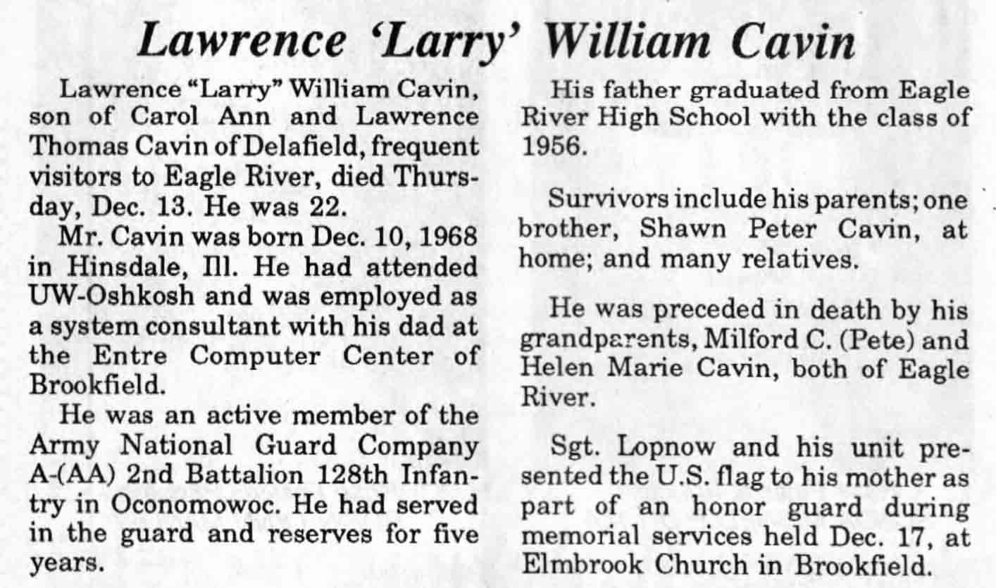 | Cavin | Lawrence William 'Larry' | 10 Dec 1968 | 13 Dec 1990 | V N-R | 16 Jan 1991 | 6 |
