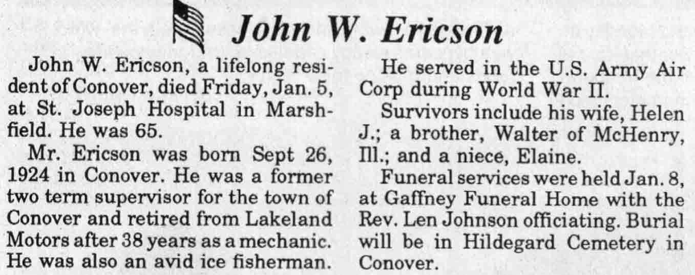 | Ericson | John W | 26 Sep 1924 | 05 Jan 1990 | V N-R | 10 Jan 1990 | 4 |