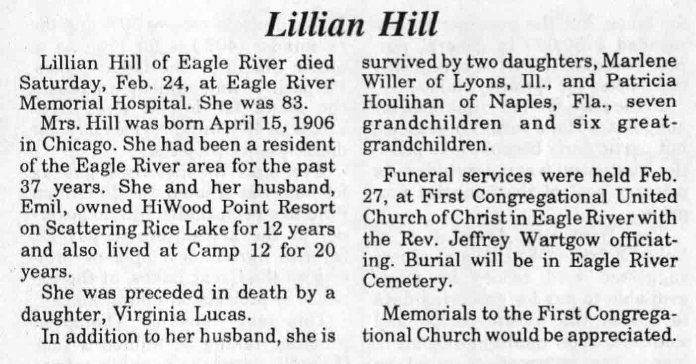 | Hunt | Lillian H (Tews) | 28 Oct 1901 | 22 Nov 1990 | V N-R | 12 Dec 1990 | 4 |