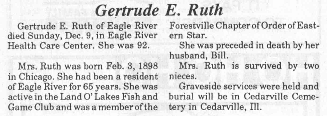| Ruth | Gertrude E | 3 Feb 1898 | 02 Dec 1990 | V N-R | 12 Dec 1990 | 4 |