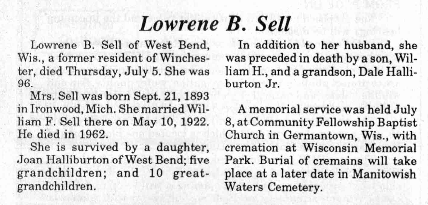 | Sell | Lowrene B | 21 Sep 1893 | 05 Jul 1990 | V N-R | 11 Jul 1990 | 4 |