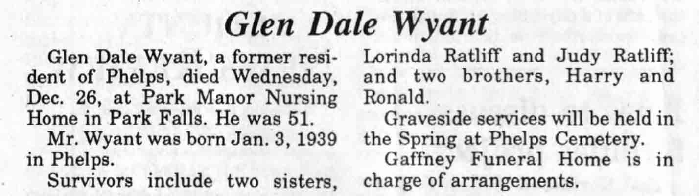 | Wyant | Glen Dale | 03 Jan 1939 | 26 Dec 1990 | V N-R | 02 Jan 1991 | 4 |