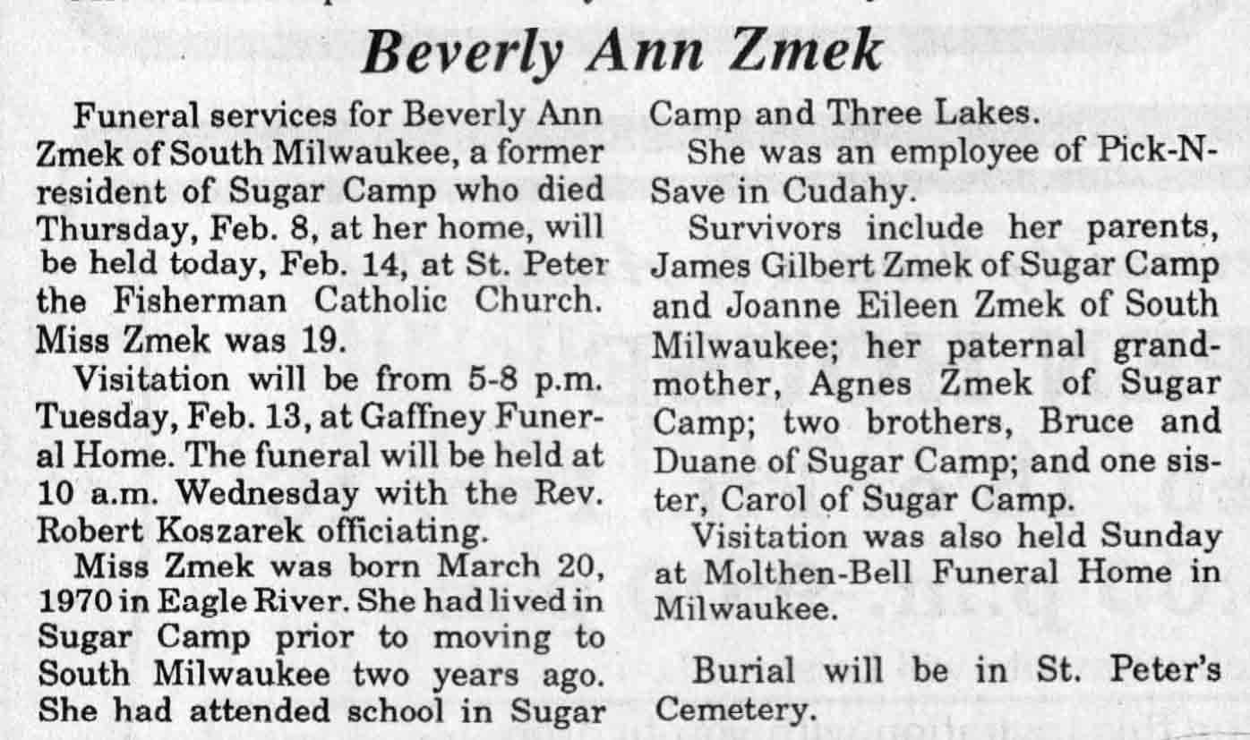 | Zmek | Beverly Ann | 20 Mar 1970 | 08 Feb 1990 | V N-R | 14 Feb 1990 | 4 |