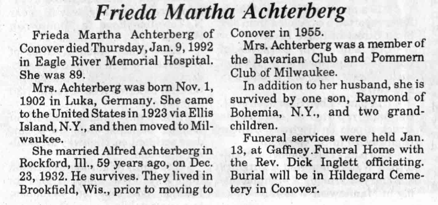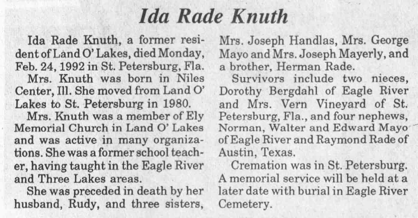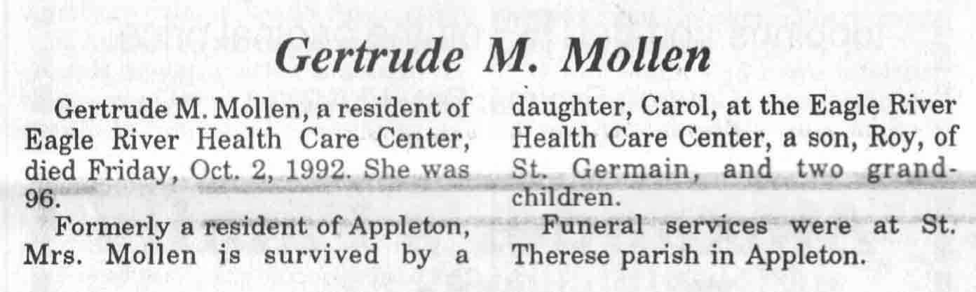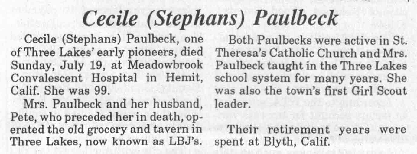 | Paulbeck | Cecile (Stephans) | c 1893 | 19 Jul 1992 | V N-R | 05 Aug 1992 | 4 |