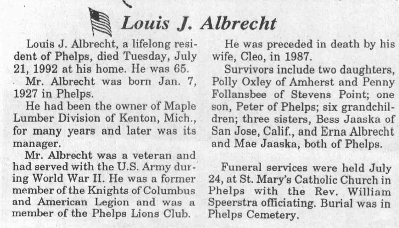 | Albrecht | Louis J | 07 Jan 1927 | 21 Jul 1992 | V N-R | 29 Jul 1992 | 4 |