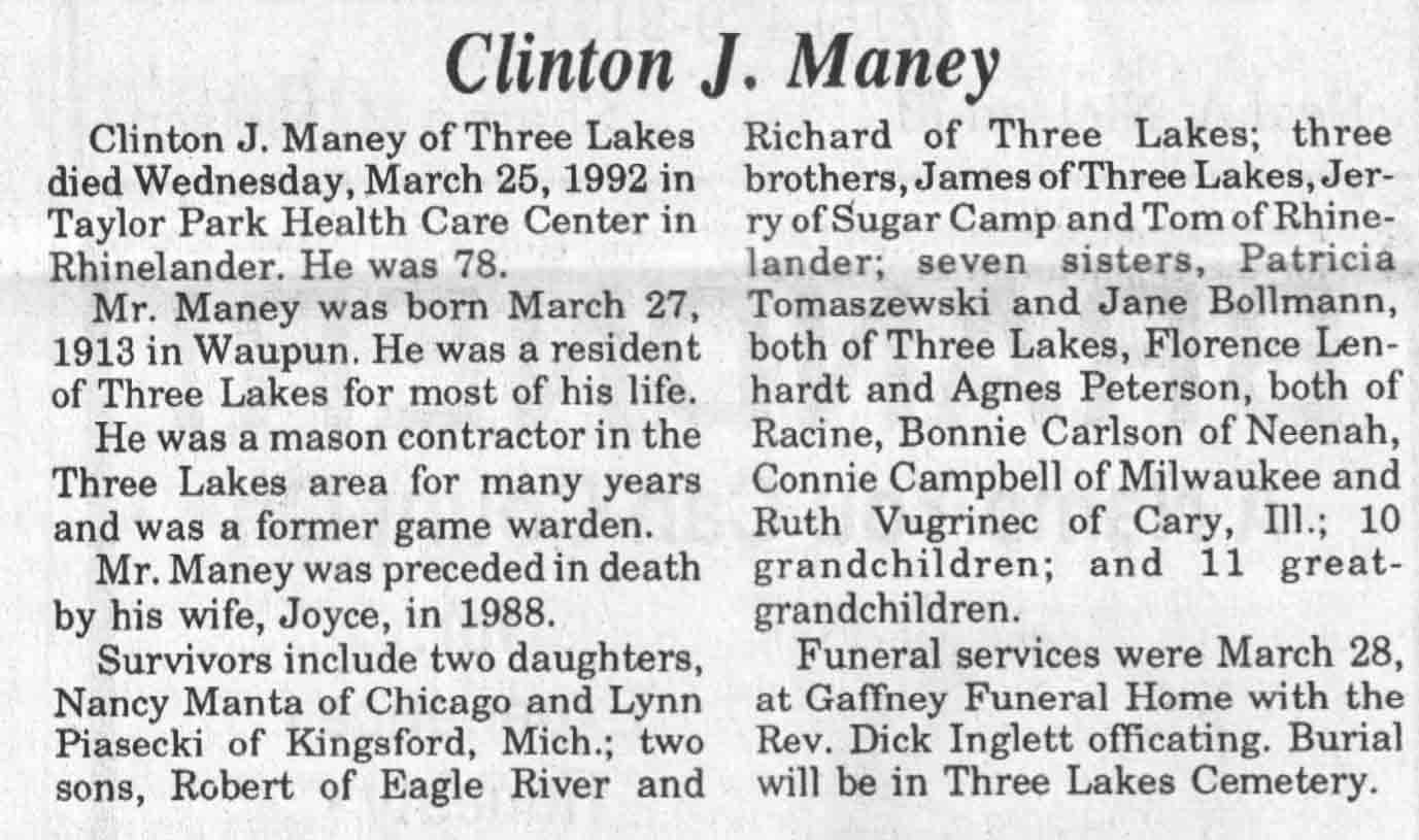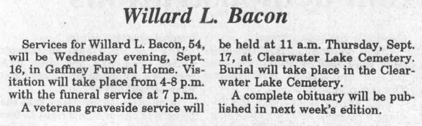 | Bacon | Willard L #1 | c 1938 | Sep 1992 | V N-R | 16 Sep 1992 | 4 |