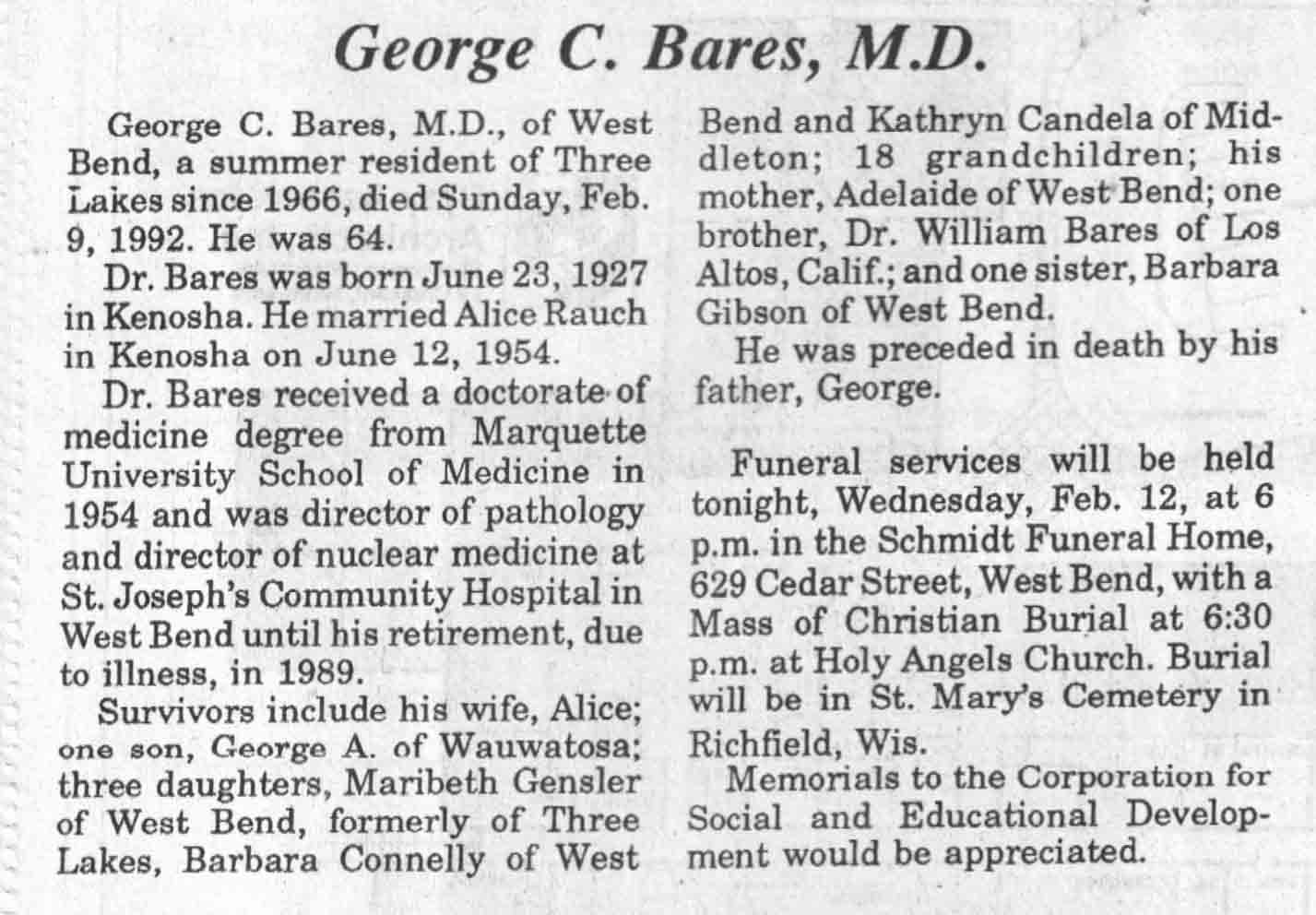| Bares | George C, Dr | 23 Jun 1927 | 09 Feb 1992 | V N-R | 12 Feb 1992 | 4 |