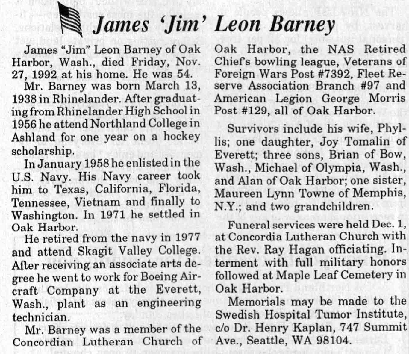 | Barney | James Leon 'Jim' | 13 Mar 1938 | 27 Nov 1992 | V N-R | 02 Dec 1992 | 4 |