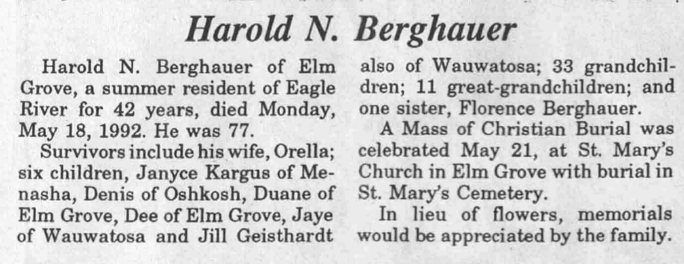 | Berghauer | Harold N | c 1915 | 18 May 1992 | V N-R | 27 May 1992 | 4 |