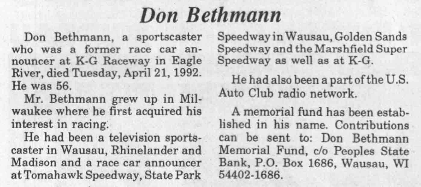 | Bethmann | Donald F | c 1936 | 21 Apr 1992 | V N-R | 06 May 1992 | 4 |