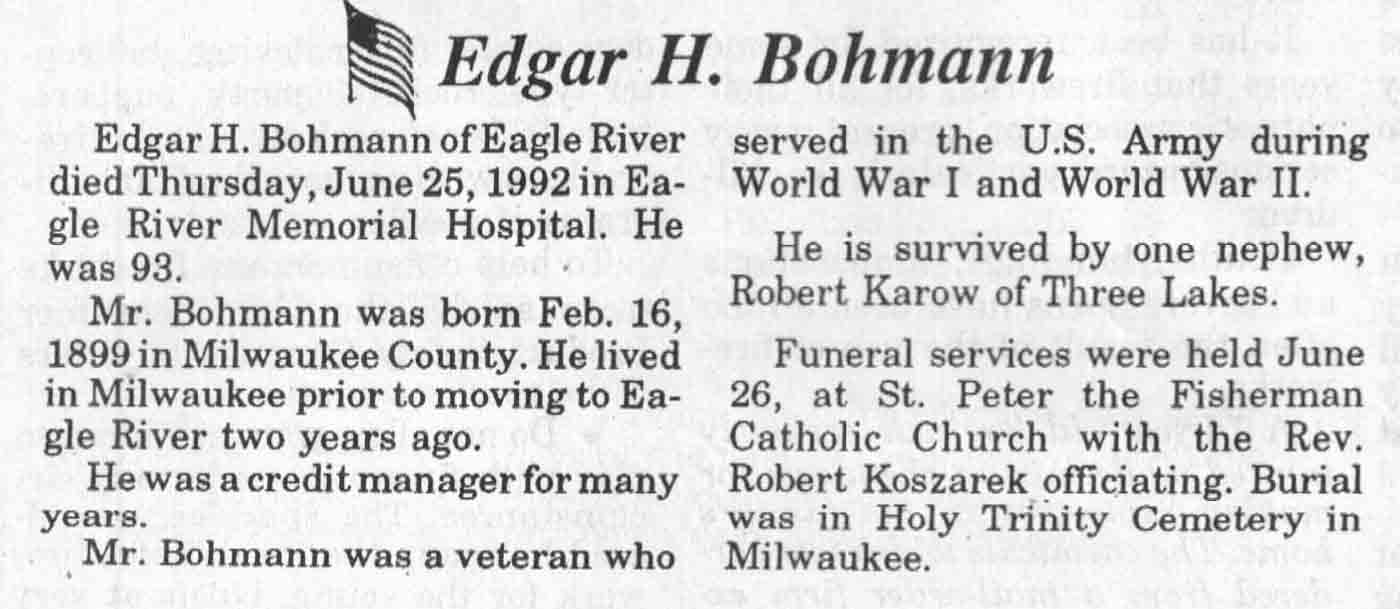 | Bohmann | Edgar H | 16 Feb 1899 | 25 Jun 1992 | V N-R | 01 Jul 1992 | 4 |