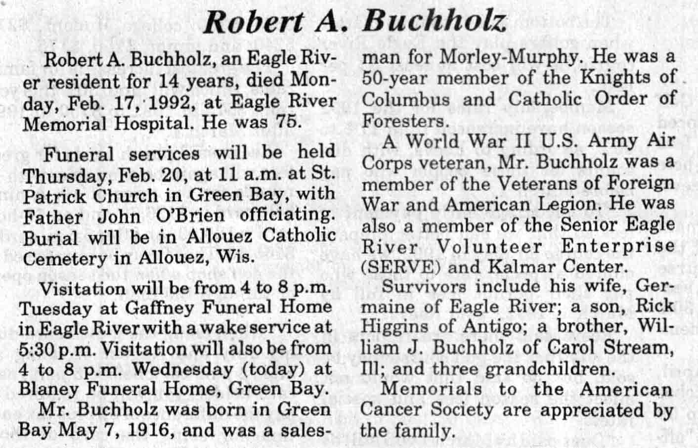 | Buchholz | Robert A | 07 May 1916 | 17 Feb 1992 | V N-R | 19 Feb 1992 | 4 |