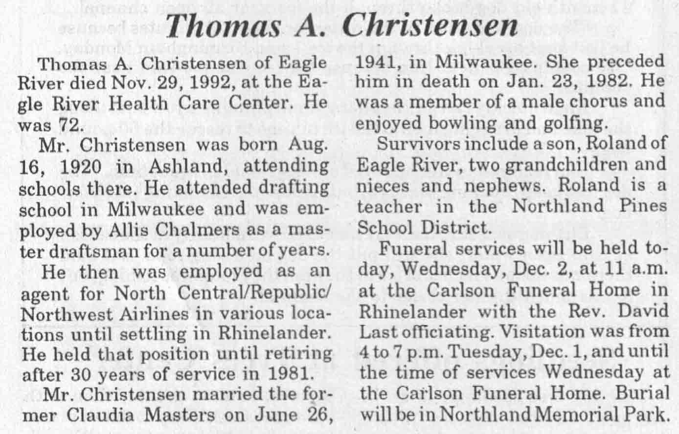 | Christensen | Thomas A | 16 Aug 1920 | 29 Nov 1992 | V N-R | 02 Dec 1992 | 4 |