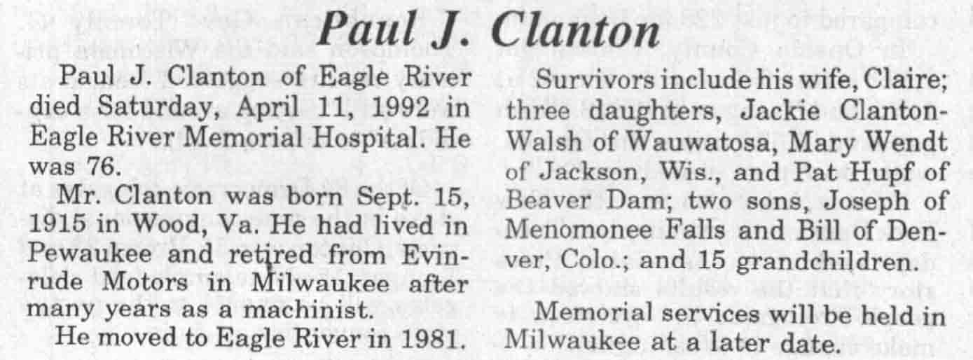 | Clanton | Paul J | 15 Sep 1915 | 11 Apr 1992 | V N-R | 15 Apr 1992 | 4 |