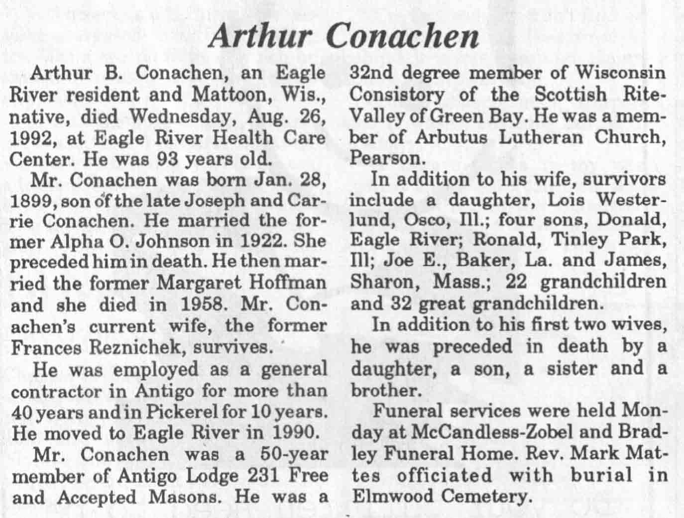 | Conachen | Arthur B | 28 Jan 1899 | 26 Aug 1992 | V N-R | 02 Sep 1992 | 4 |