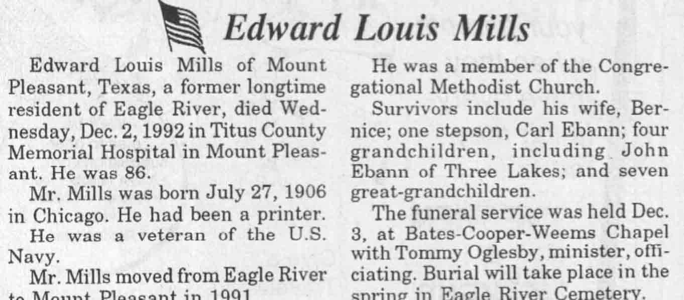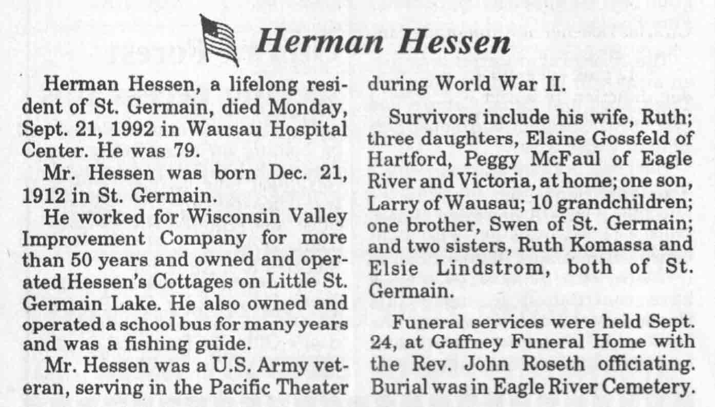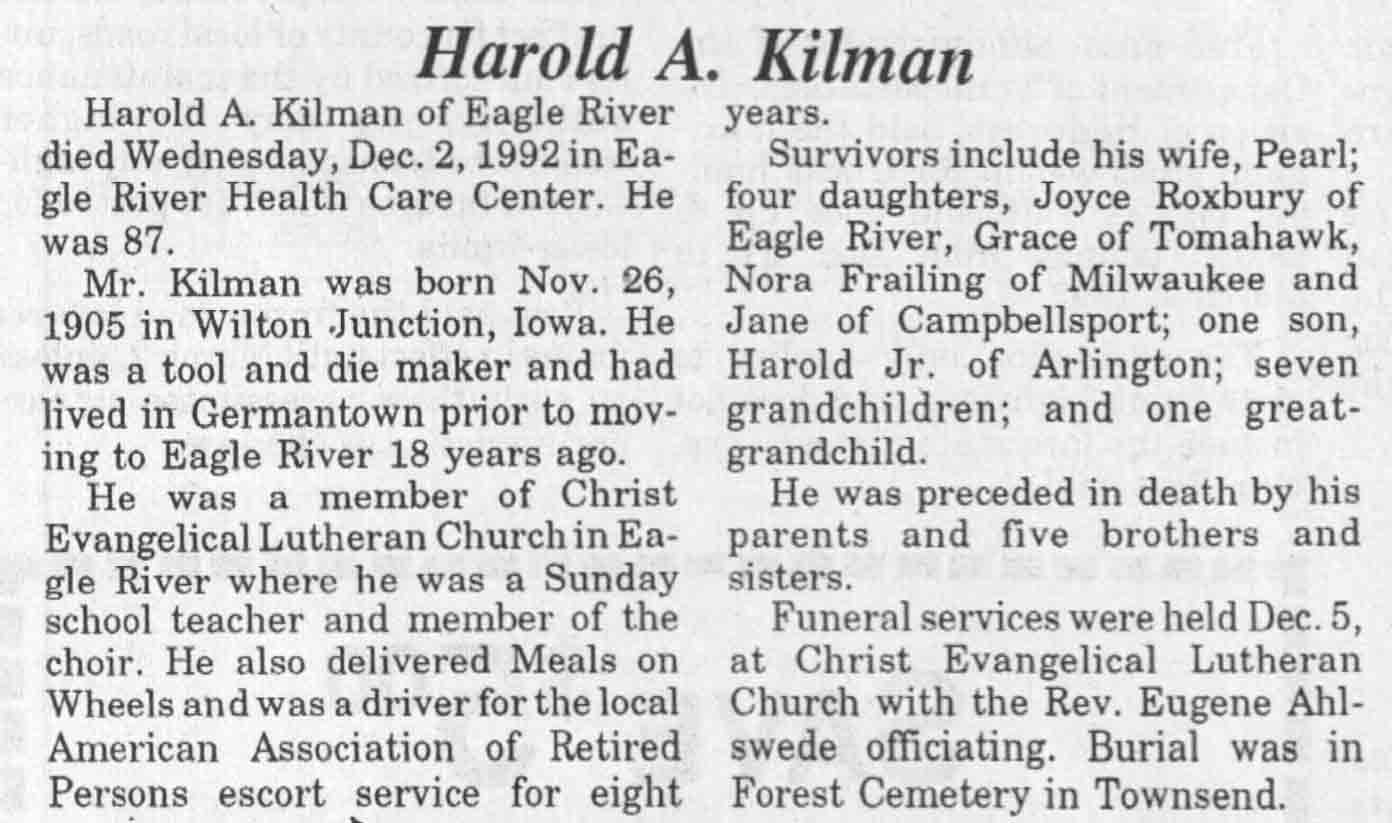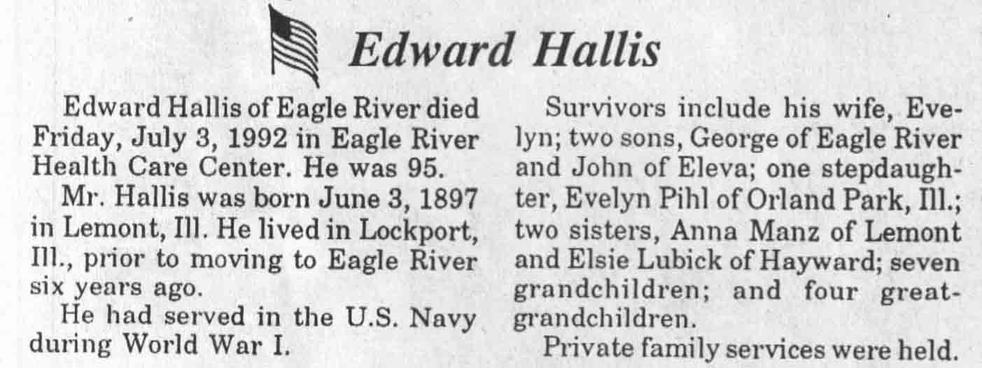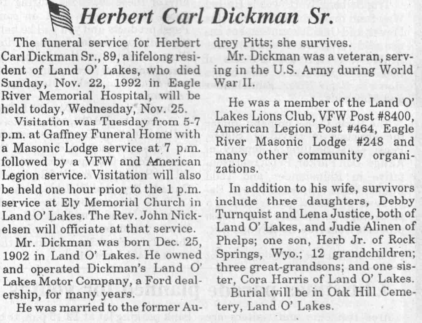 | Dickman | Herbert Carl, Sr | 25 Dec 1902 | 22 Nov 1992 | V N-R | 25 Nov 1992 | 4 |