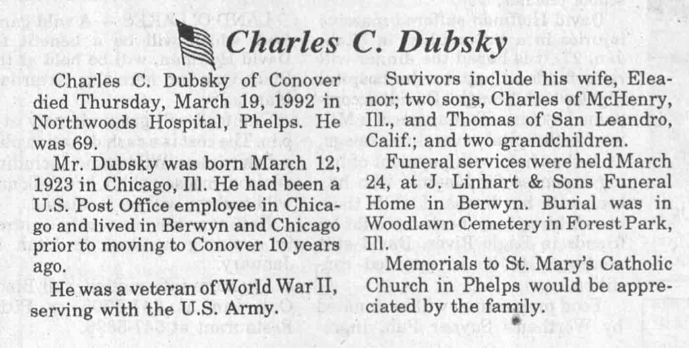 | Dubsky | Charles C | 12 Mar 1923 | 19 Mar 1992 | V N-R | 25 Mar 1992 | 4 |