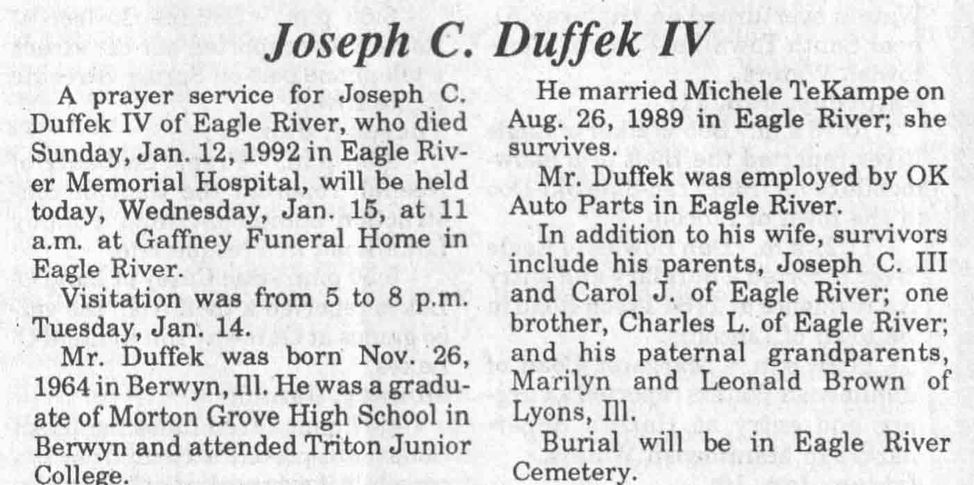 | Duffek | Joseph C, IV | 26 Nov 1964 | 12 Jan 1992 | V N-R | 15 Jan 1992 | 8 |