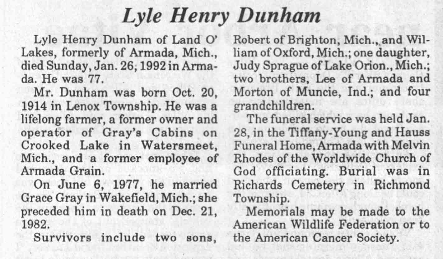| Dunham | Lyle Henry | 20 Oct 1914 | 26 Jan 1992 | V N-R | 05 Feb 1992 | 4 |