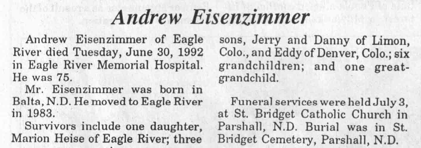 | Eisenzimmer | Andrew | c 1917 | 30 Jun 1992 | V N-R | 08 Jul 1992 | 4 |