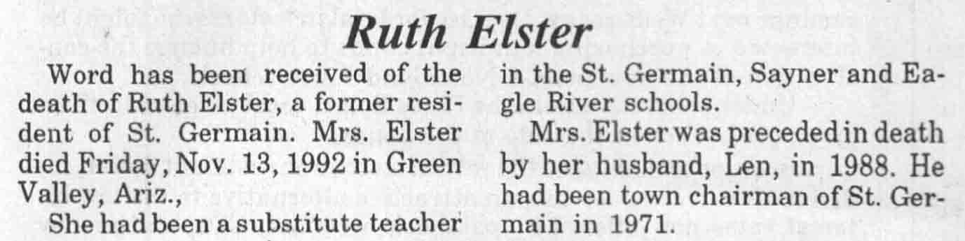 | Elster | Ruth | 13 Nov 1992 | V N-R | 09 Dec 1992 | 4 | |