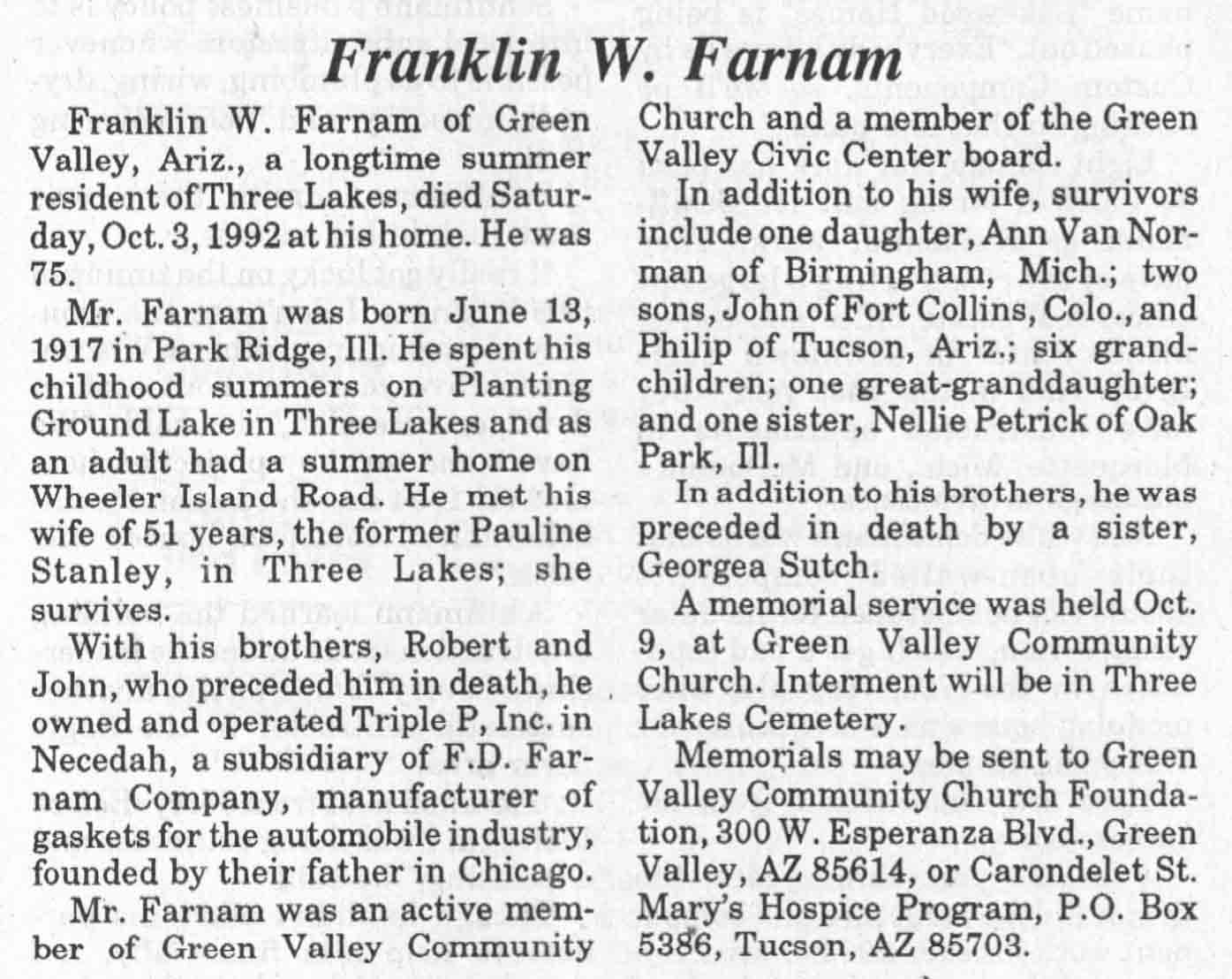 | Farnam | Franklin W | 13 Jun 1917 | 03 Oct 1992 | V N-R | 14 Oct 1992 | 4 |