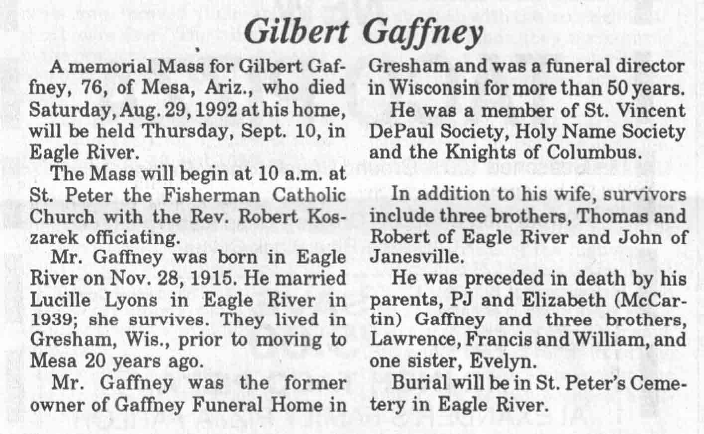 | Gaffney | Gilbert | 28 Nov 1915 | 29 Aug 1992 | V N-R | 02 Sep 1992 | 4 |