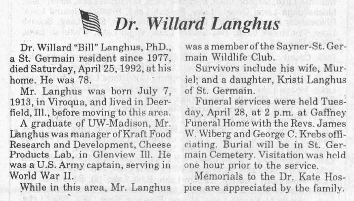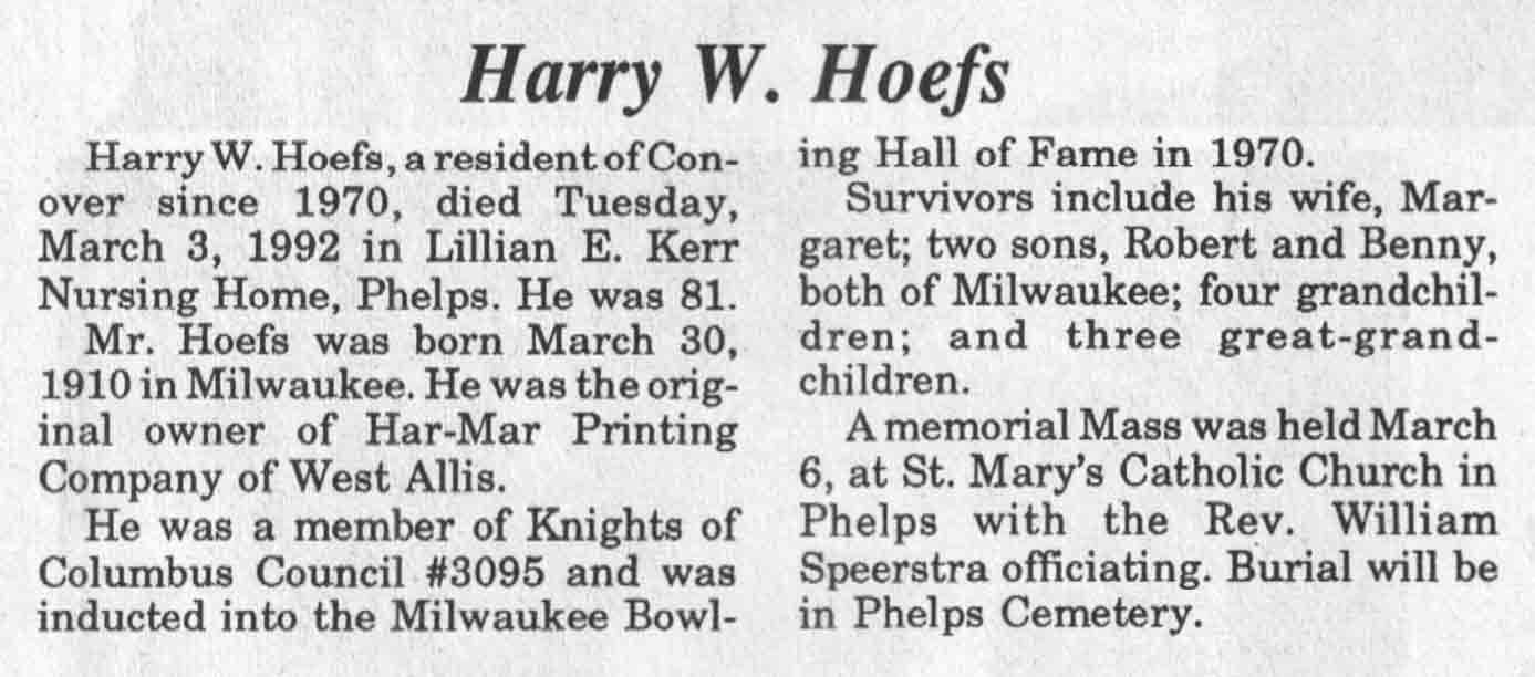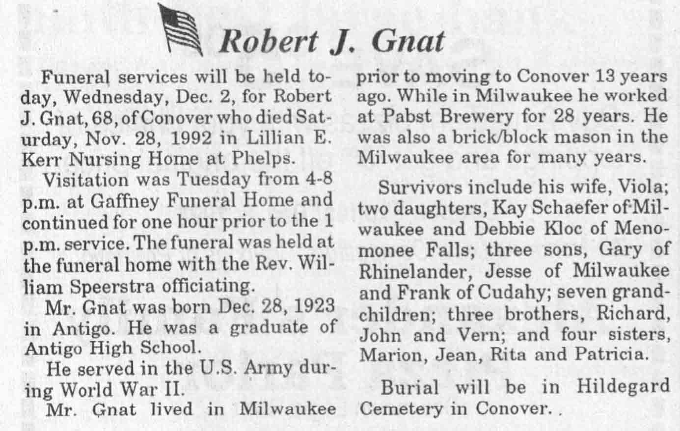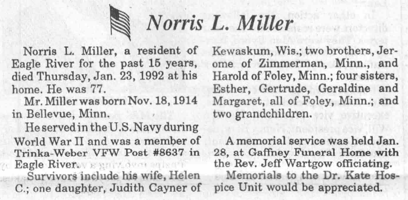 | Bilharz | Theodore F, Sr | 27 Oct 1931 | 07 Oct 1992 | V N-R | 21 Oct 1992 | 4 |