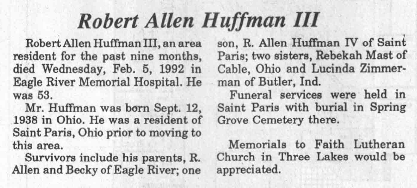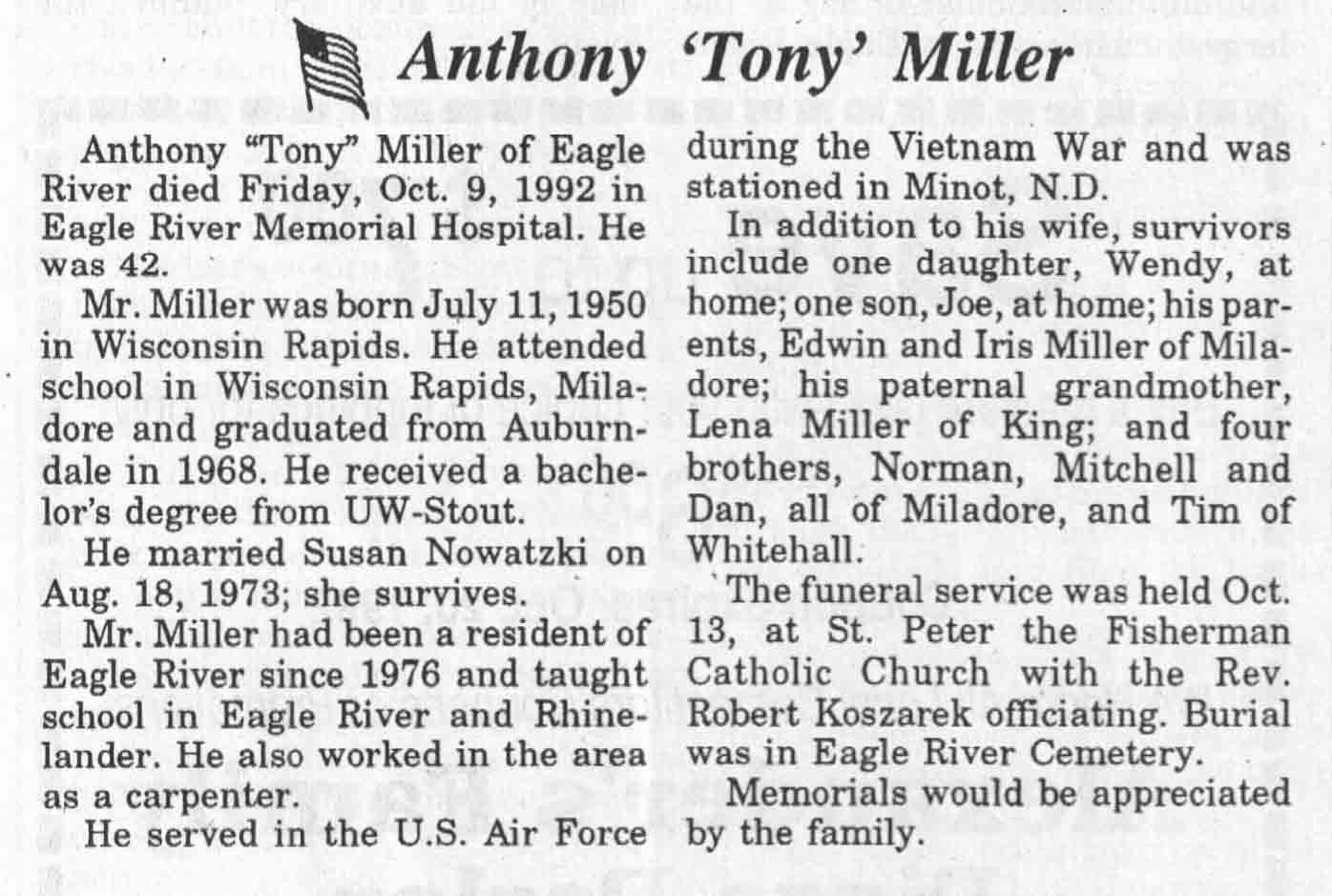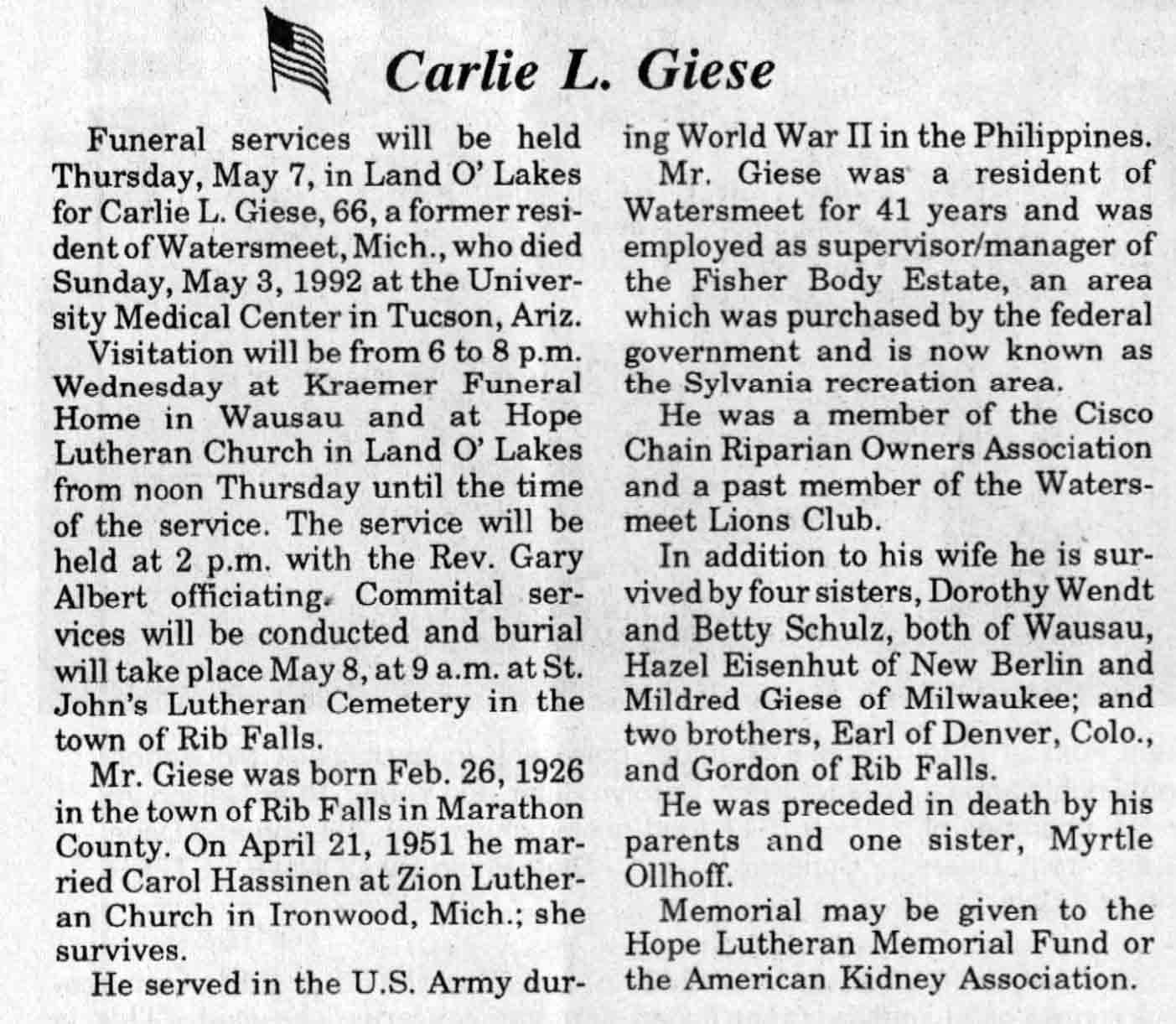 | Bilharz | Theodore F, Sr | 27 Oct 1931 | 07 Oct 1992 | V N-R | 21 Oct 1992 | 4 |