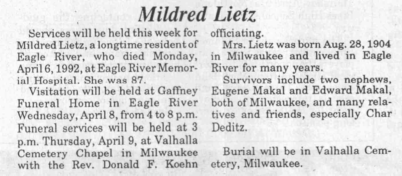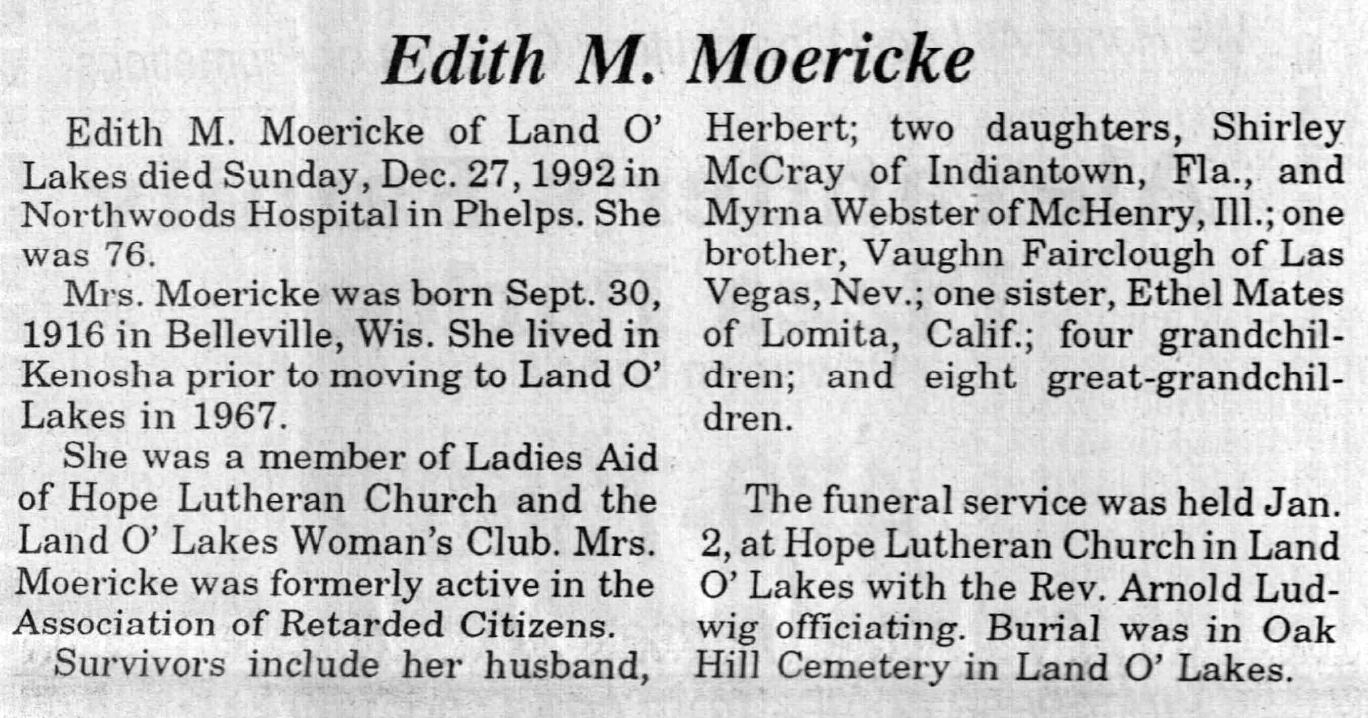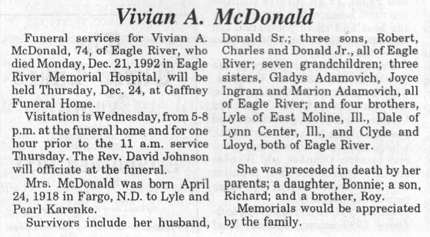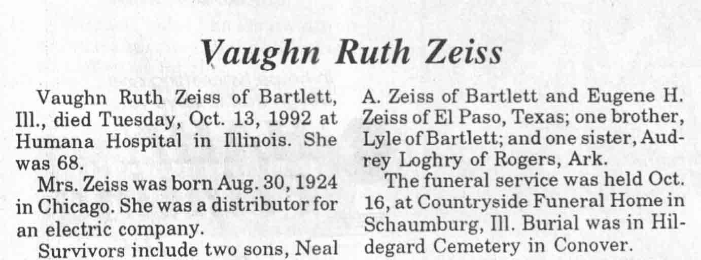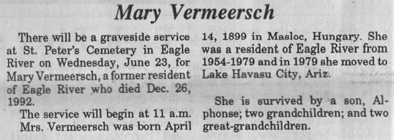 | VanHaverbeke | Bernice K | 1904 | 24 Sep 1992 | V N-R | 21 Oct 1992 | 4 |