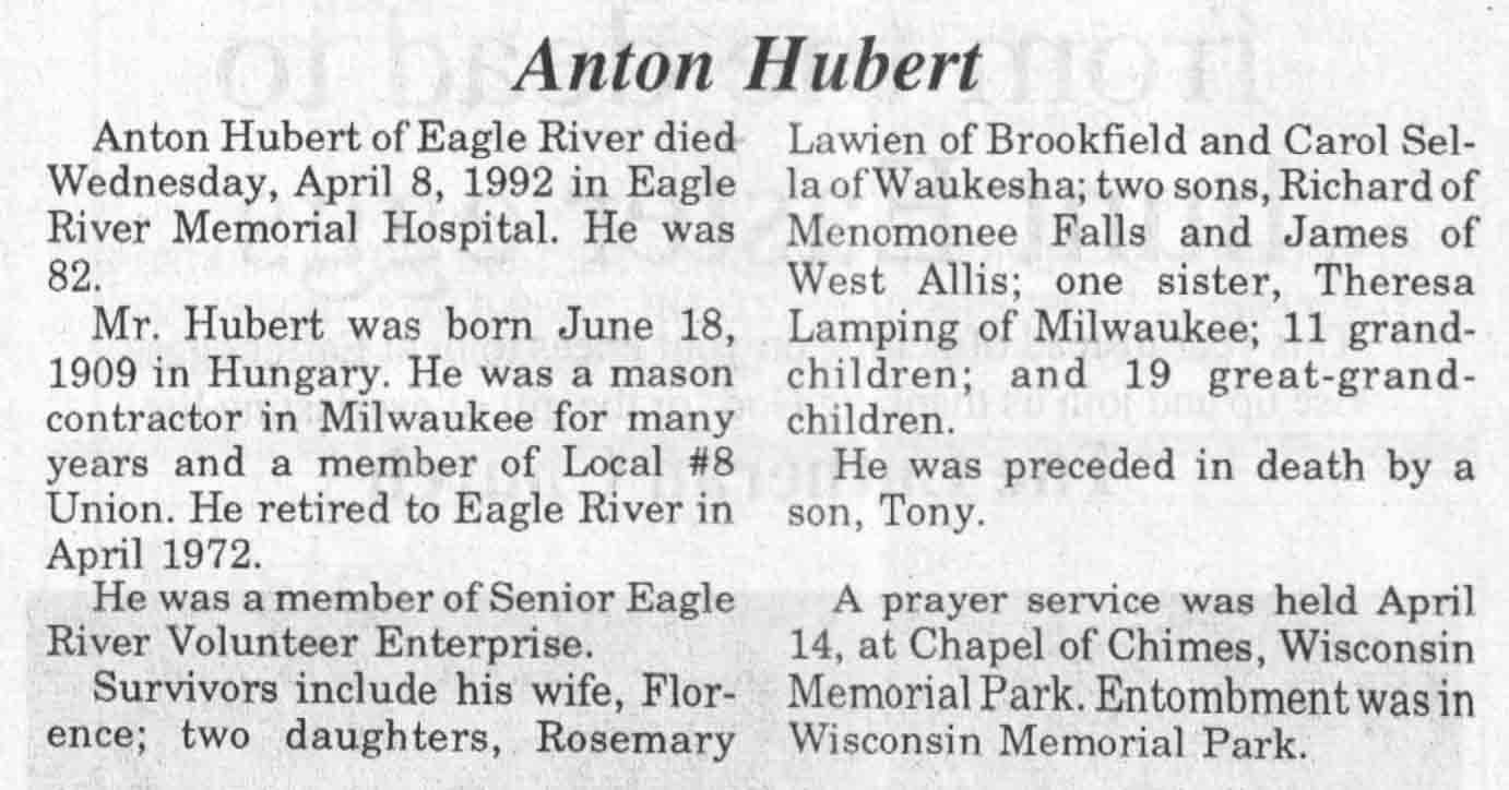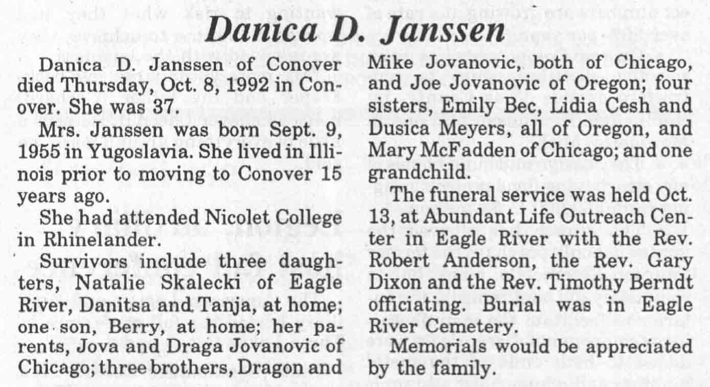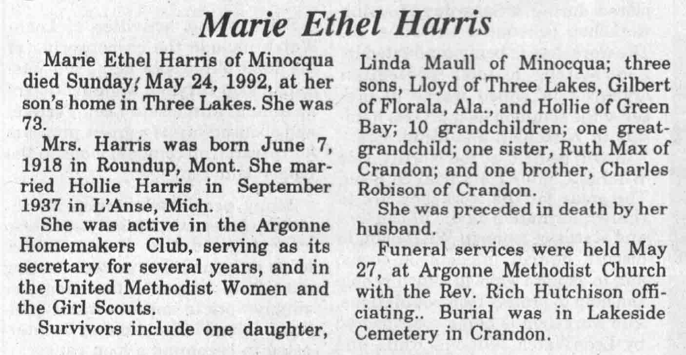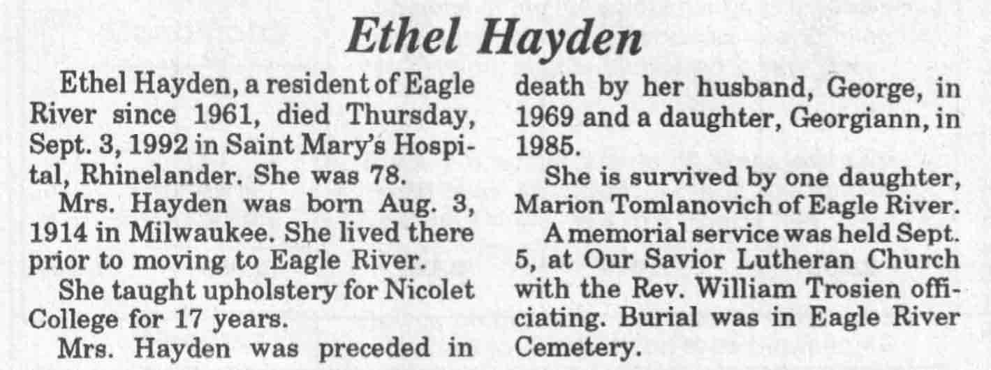 | VanHaverbeke | Bernice K | 1904 | 24 Sep 1992 | V N-R | 21 Oct 1992 | 4 |