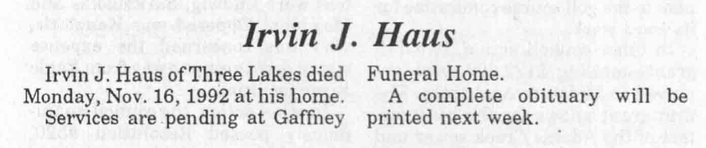 | Cochrane | William Lasselle, Dr #2 | c 1916 | 04 Jul 1992 | V N-R | 15 Jul 1992 | 4 |