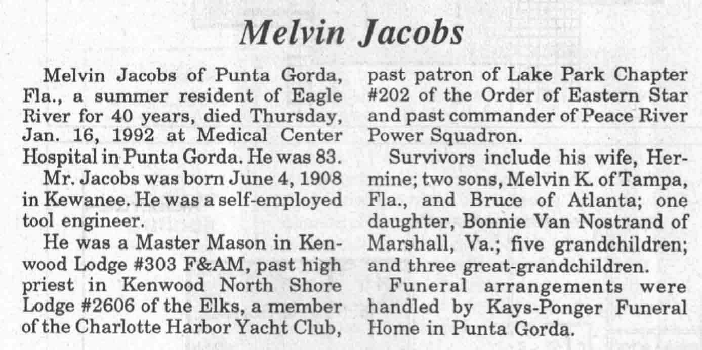 | Bacon | Willard L #2 | 21 Dec 1937 | 11 Sep 1992 | V N-R | 23 Sep 1992 | 4 |