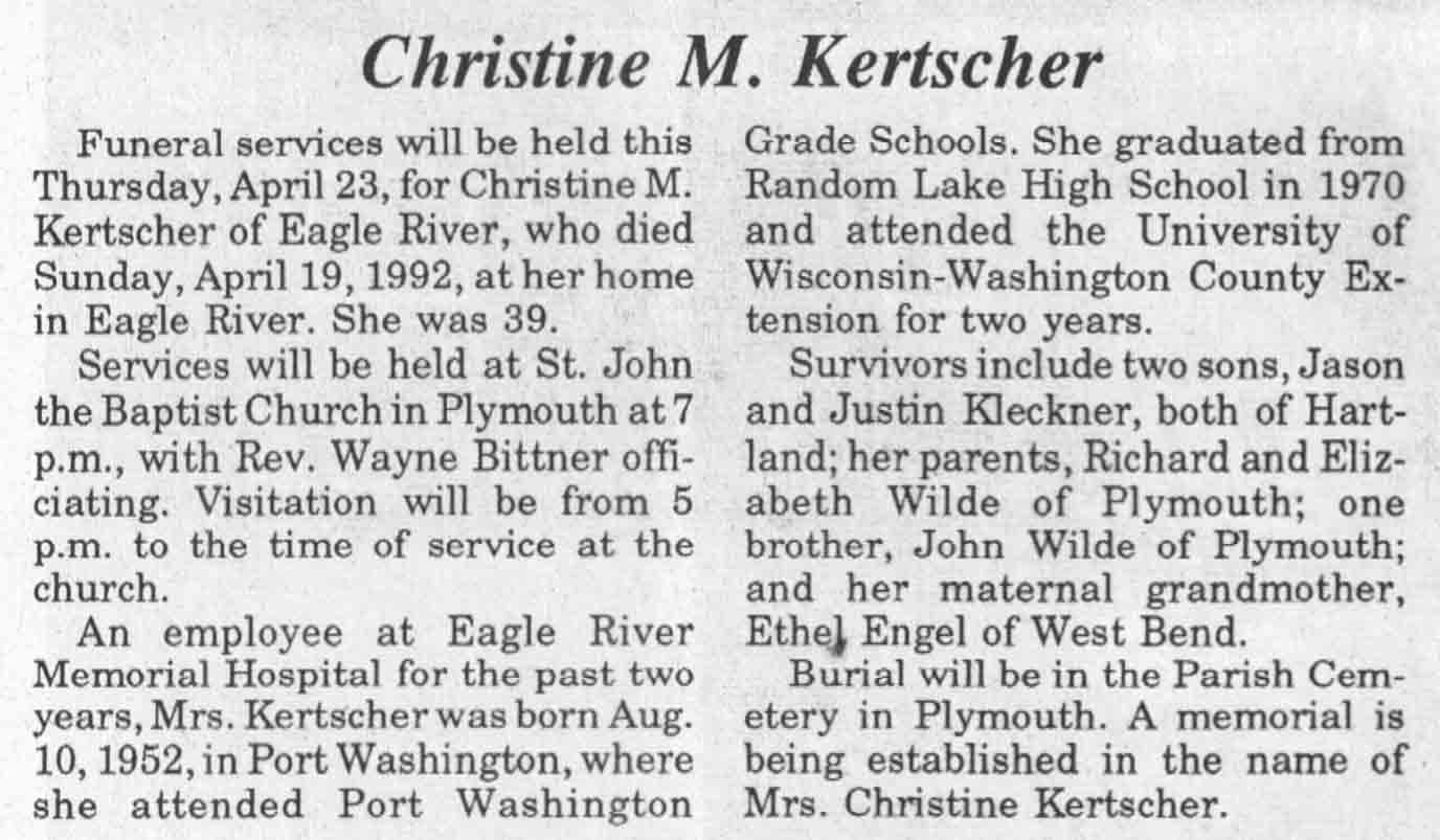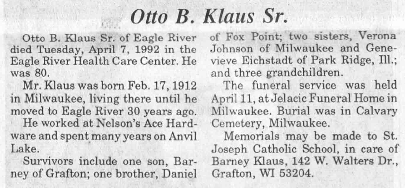 | Weyers | Richard B #1 | c 1929 | 06 Jul 1992 | V N-R | 08 Jul 1992 | 4 |