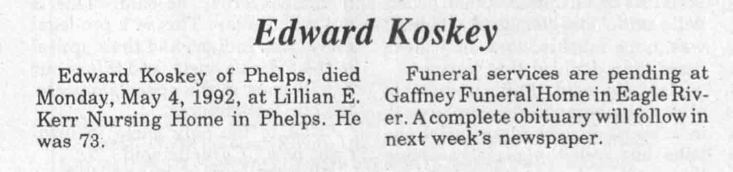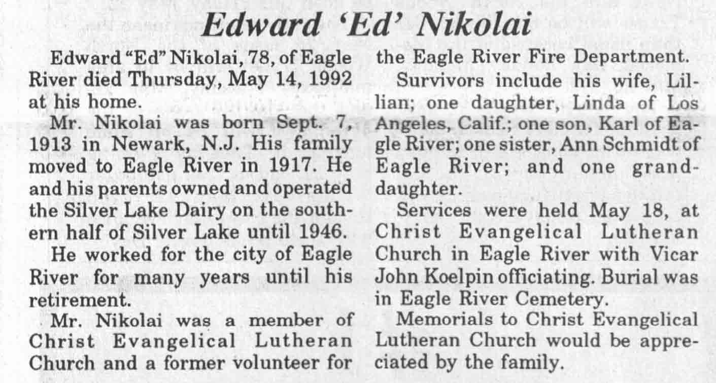 | Nikolai | Edward 'Ed' | 07 Sep 1913 | 14 May 1992 | V N-R | 20 May 1992 | 4 |